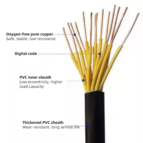 Jacket: The outermost extruded polyvinyl chloride (PVC) jacket effectively protects the inner cable core from mechanical damage, chemical corrosion and moisture intrusion.